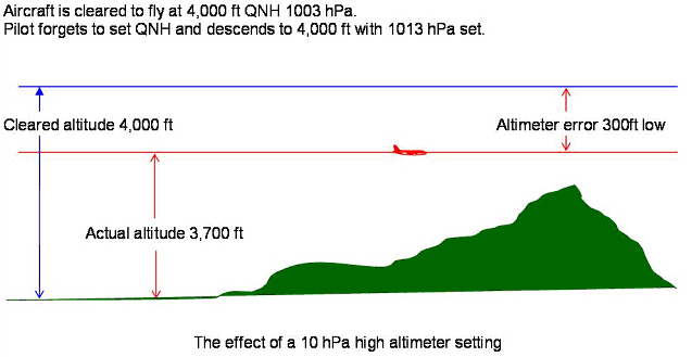 - Loss of situational awareness due to failure to appreciate the significance of a pressure setting (especially QFE as opposed to QNH). This can result in incorrect appreciation of the closeness of the ground possibly leading to an unstabilised approach or collision with the ground (CFIT).