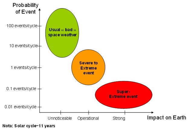 Figure 3: Probability of space weather events versus impact on Earth