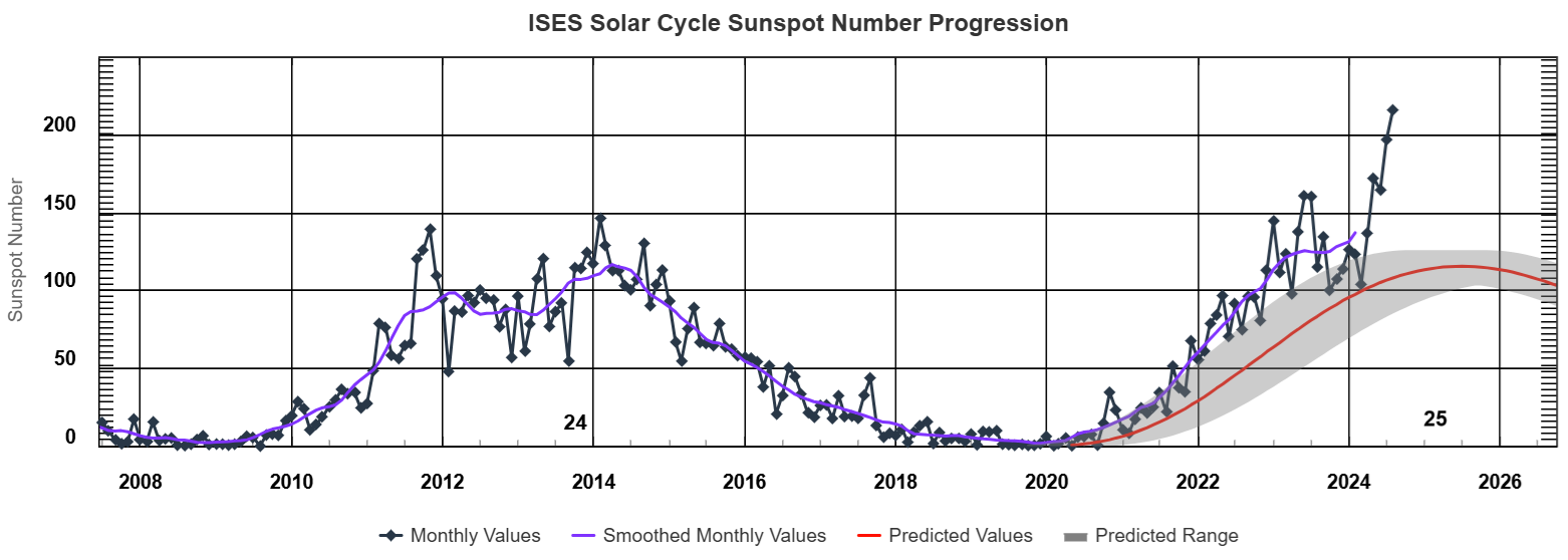 Figure 2: Solar cycle sunspot number progression from ISES