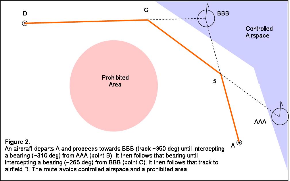 When direct beacon to beacon navigation is not possible (e.g. to avoid entering controlled airspace or danger, prohibited or restricted areas), navigation is more difficult. Two alternative methods are often used:
